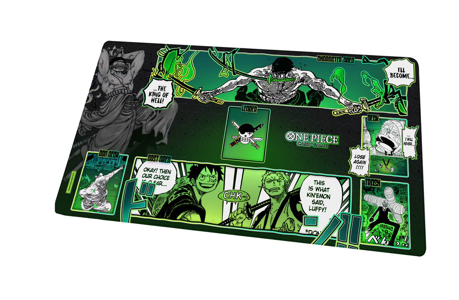 New Zoro Playmat! Playmat has soft fabric top, bottom of the playmat covered with non-slip natural rubber backing.